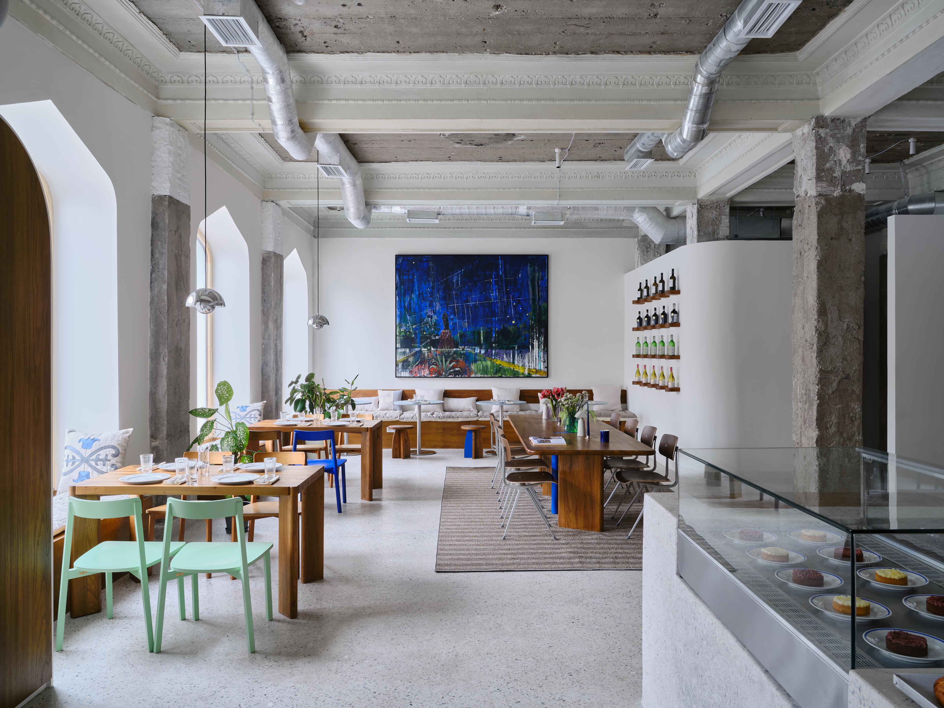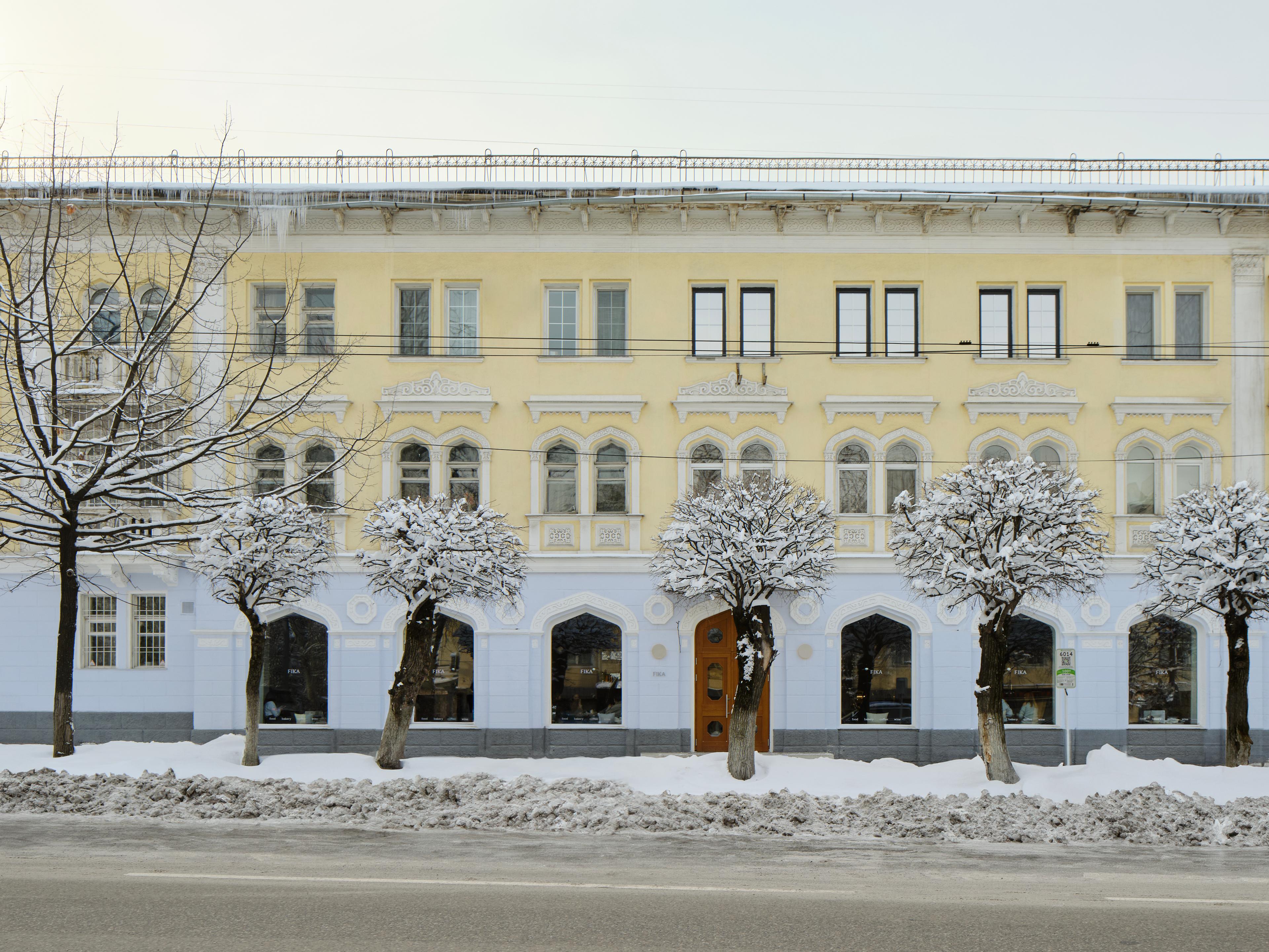 Fika is an eatery located in the TurkSib Workers' House built in 1953. The interior design is inspired by the architecture of the building and the surrounding area of Almaty, as well as our own summer travels to Copenhagen.