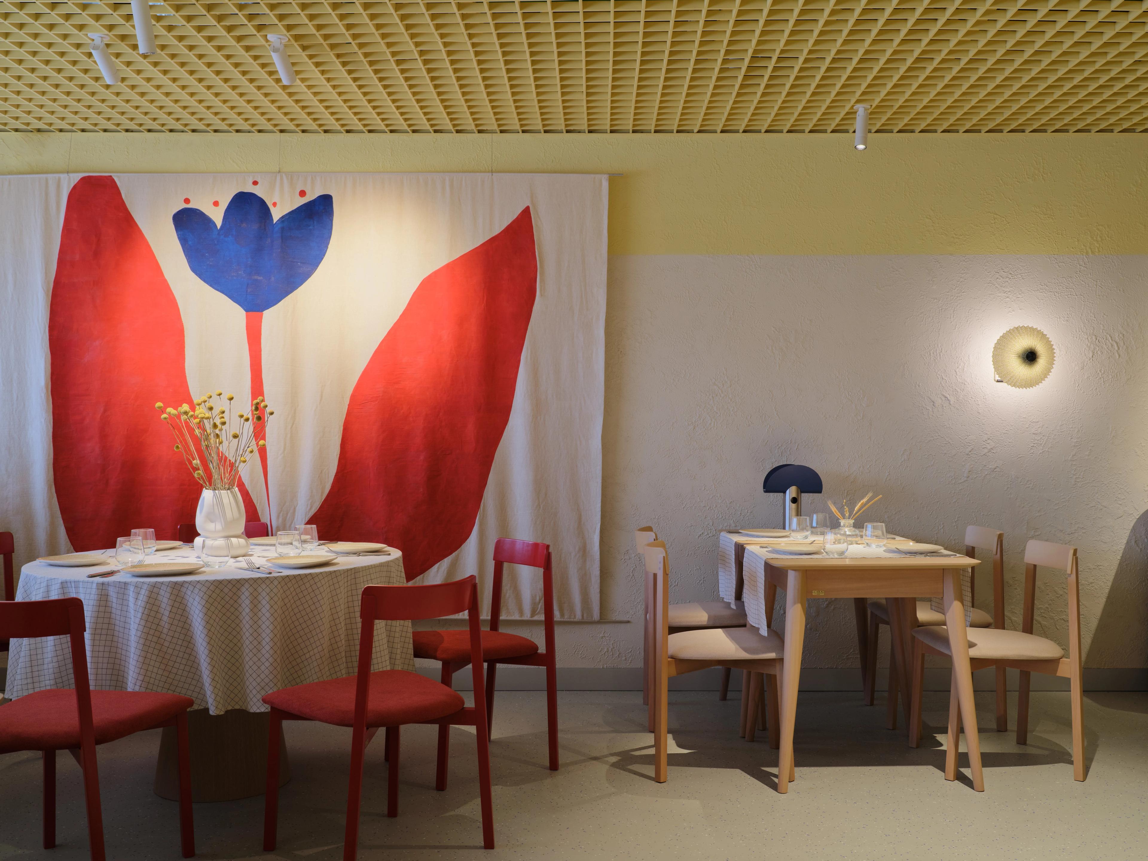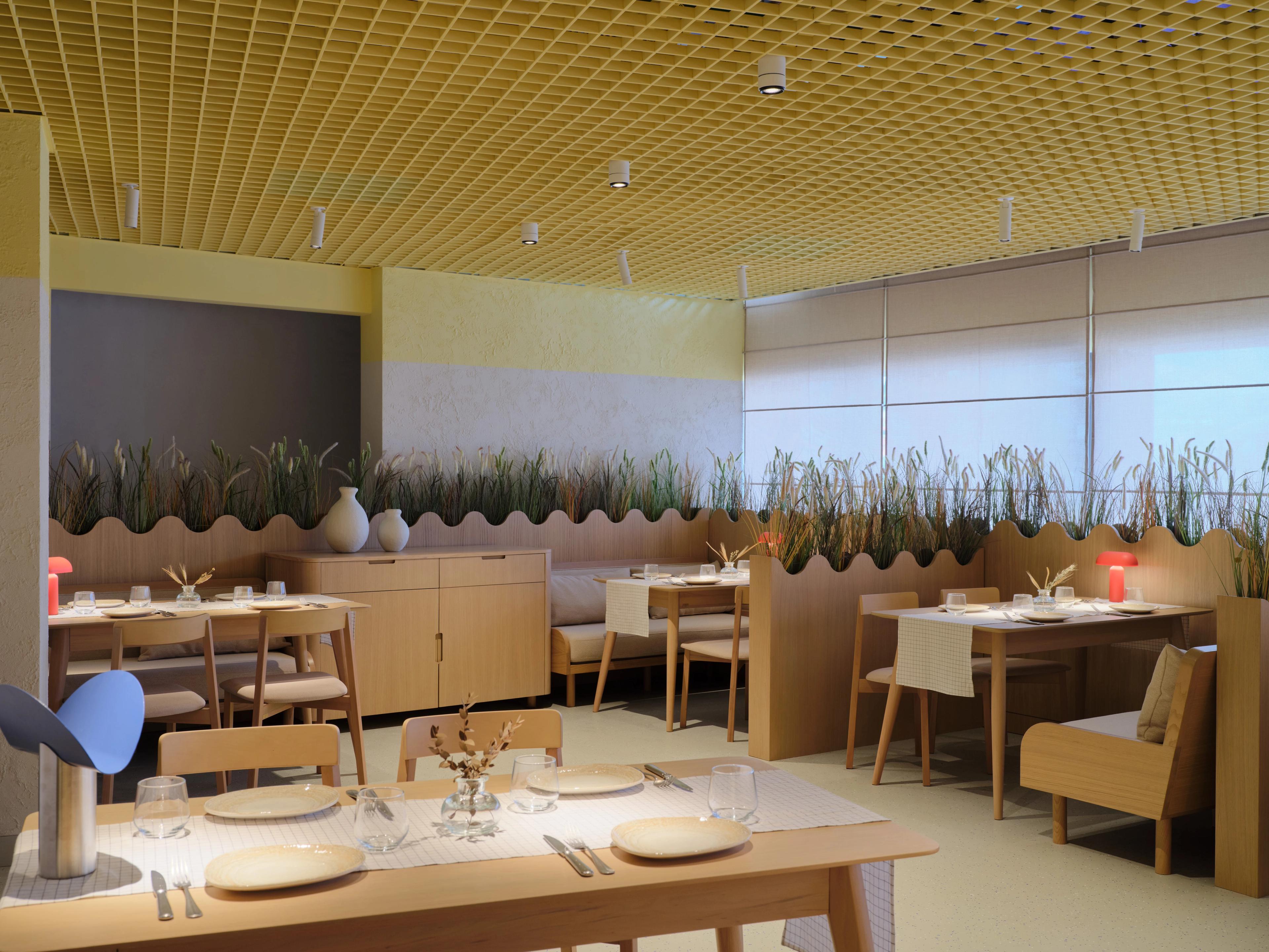 The color palette is inspired by the works of Ukrainian artists, while subtle references to wheat ears evoke Ukraine’s vast, endless fields. For the furniture and lighting, the design emphasizes collaboration with contemporary Ukrainian brands, reinforcing a modern cultural identity through craftsmanship and design.