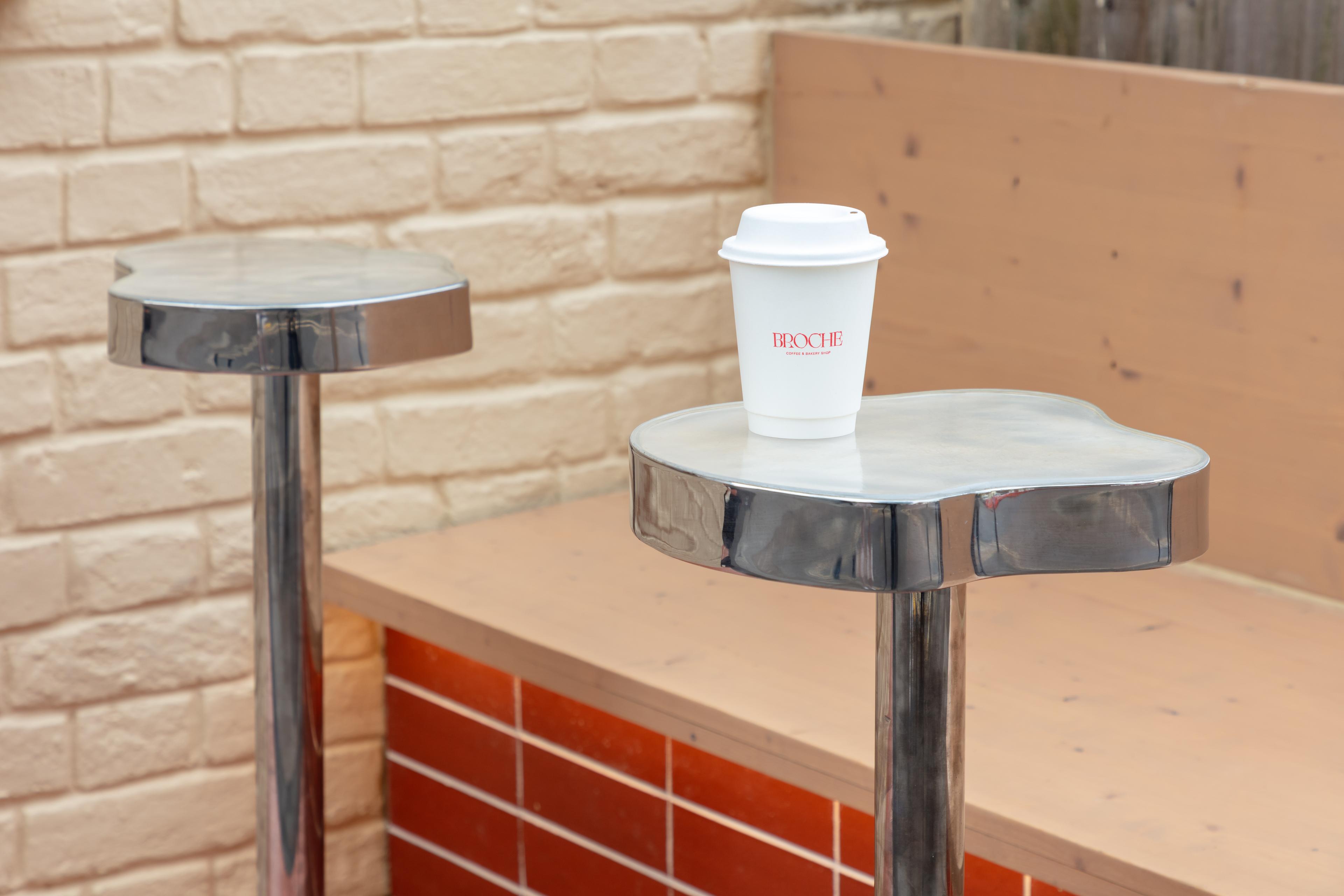 For the next Broche coffee shops, we proposed making other sustainable materials (such as recycled textiles and plastics), as well as offering brooches made from these materials as coffee shop merch.
