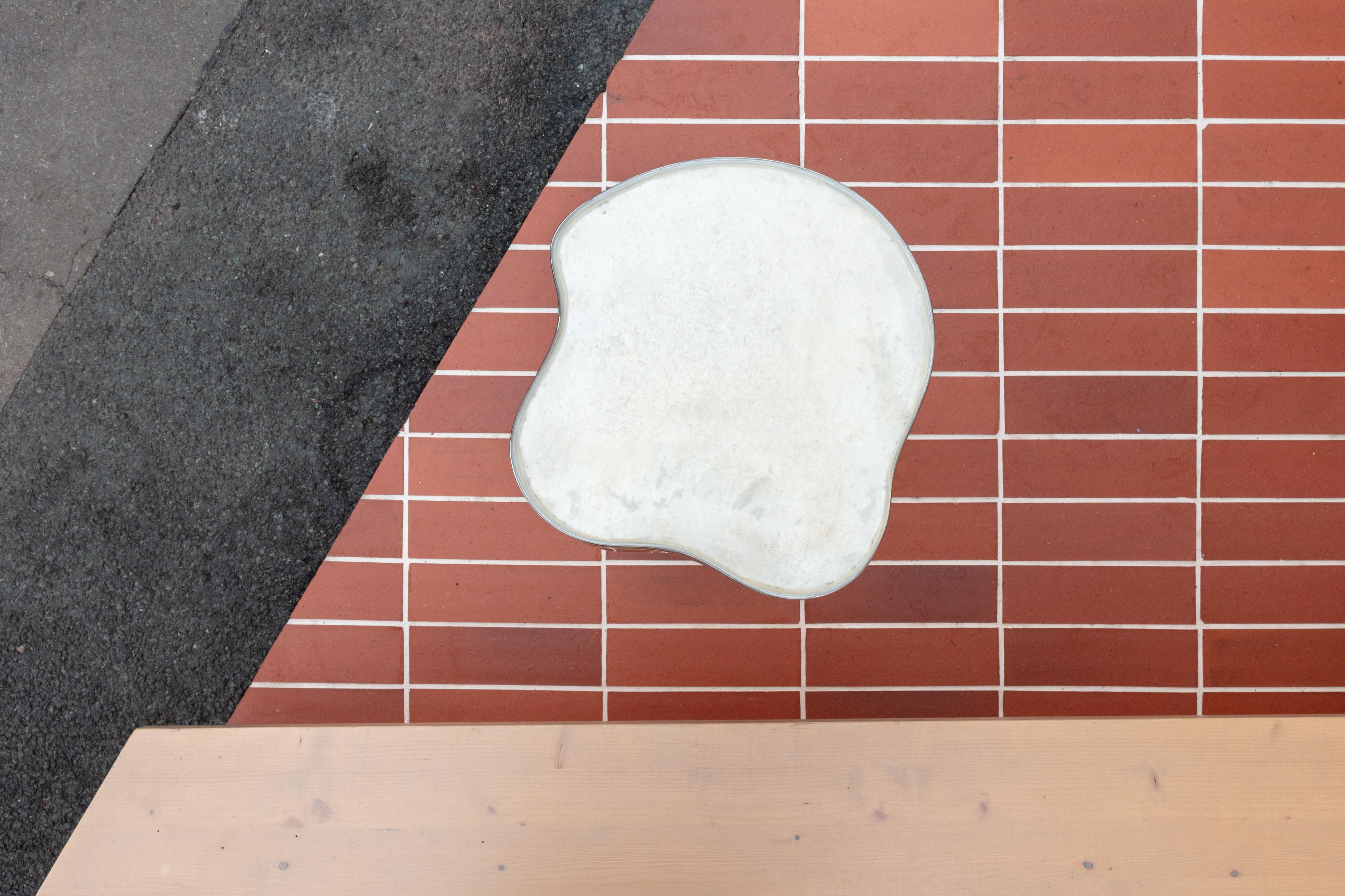 We decided to use a material that we had recently become familiar with at the last Venice Biennale: mycelium panels grown from mycelium (a fungus!). These panels are one of the most sustainable materials available today. We used the panels in the interior walls of the coffee house, made tables out of them (inspired by the shape of the mushroom) as well as street lamps.