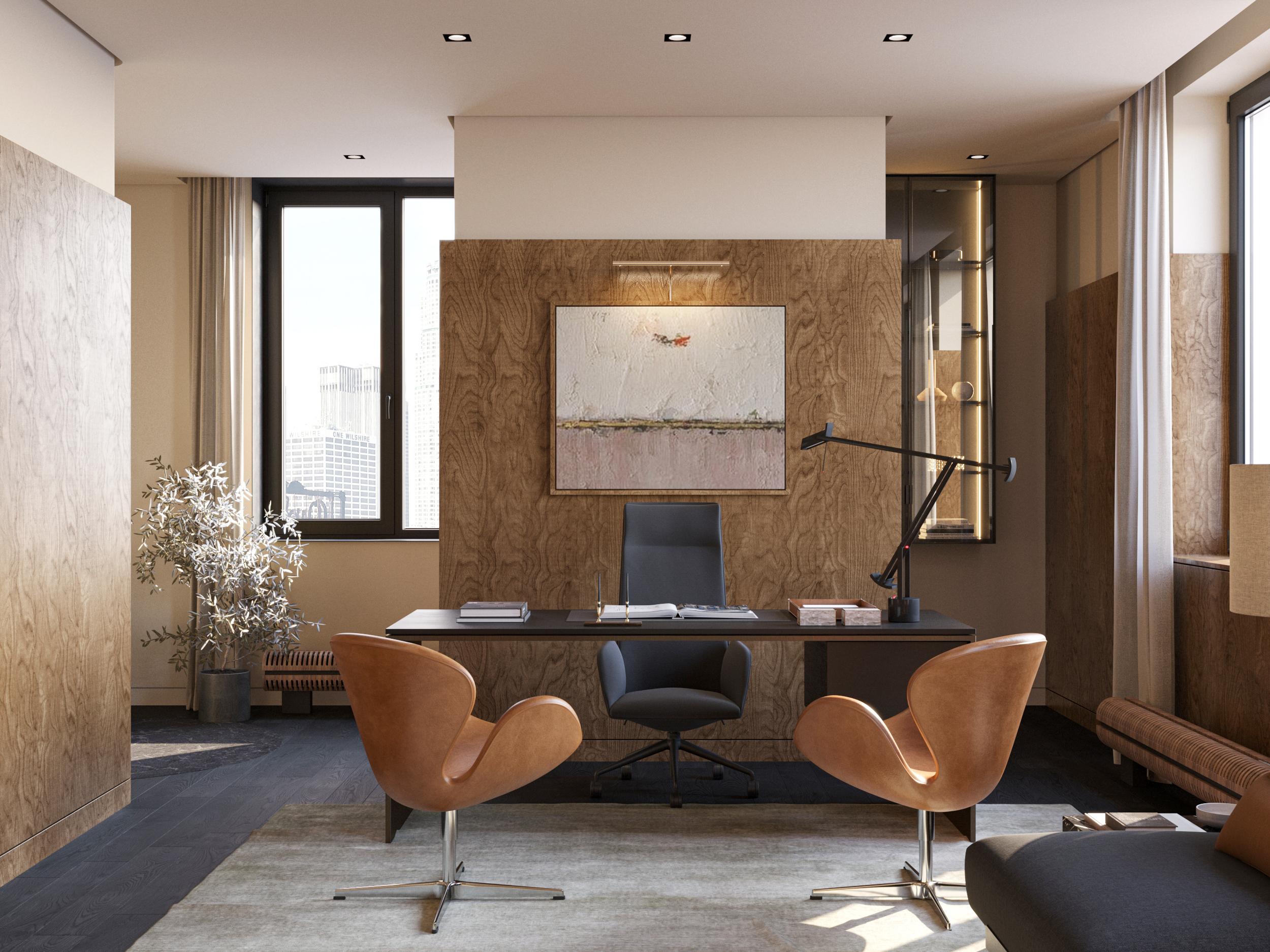 This winter we were commissioned to create a space for comfortable work and meeting with partners for our regular client. At the head of the concept was a goal to create a subtle yet sophisticated space.
